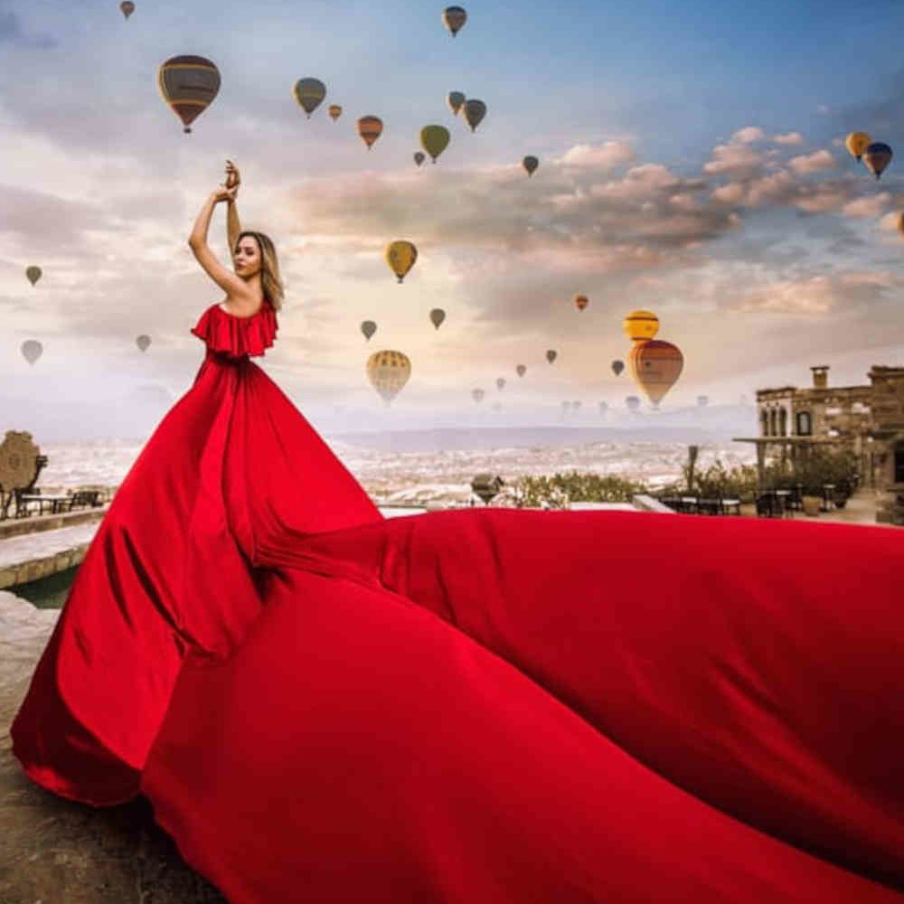 Let Petra Inn Cappadocia whisk you into a fairytale with a Flying Dresses photo session. Slip into a brilliantly colored gown designed to ripple dramatically on the breeze, then pose among Cappadocia’s towering fairy chimneys and sweeping valleys. Our photographer times each twirl so the fabric unfurls in mid-air, turning every shot into a piece of living art. Whether you’re celebrating love, family, or a solo milestone, this one-of-a-kind experience captures Cappadocia’s wonder—and your own—in unforgettable images.