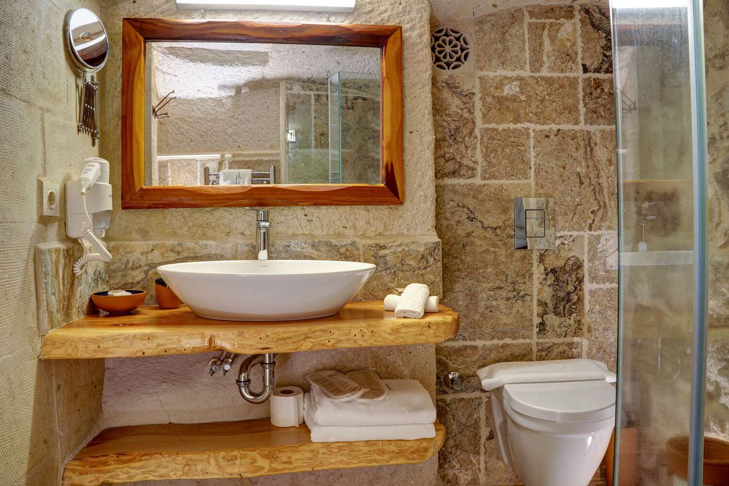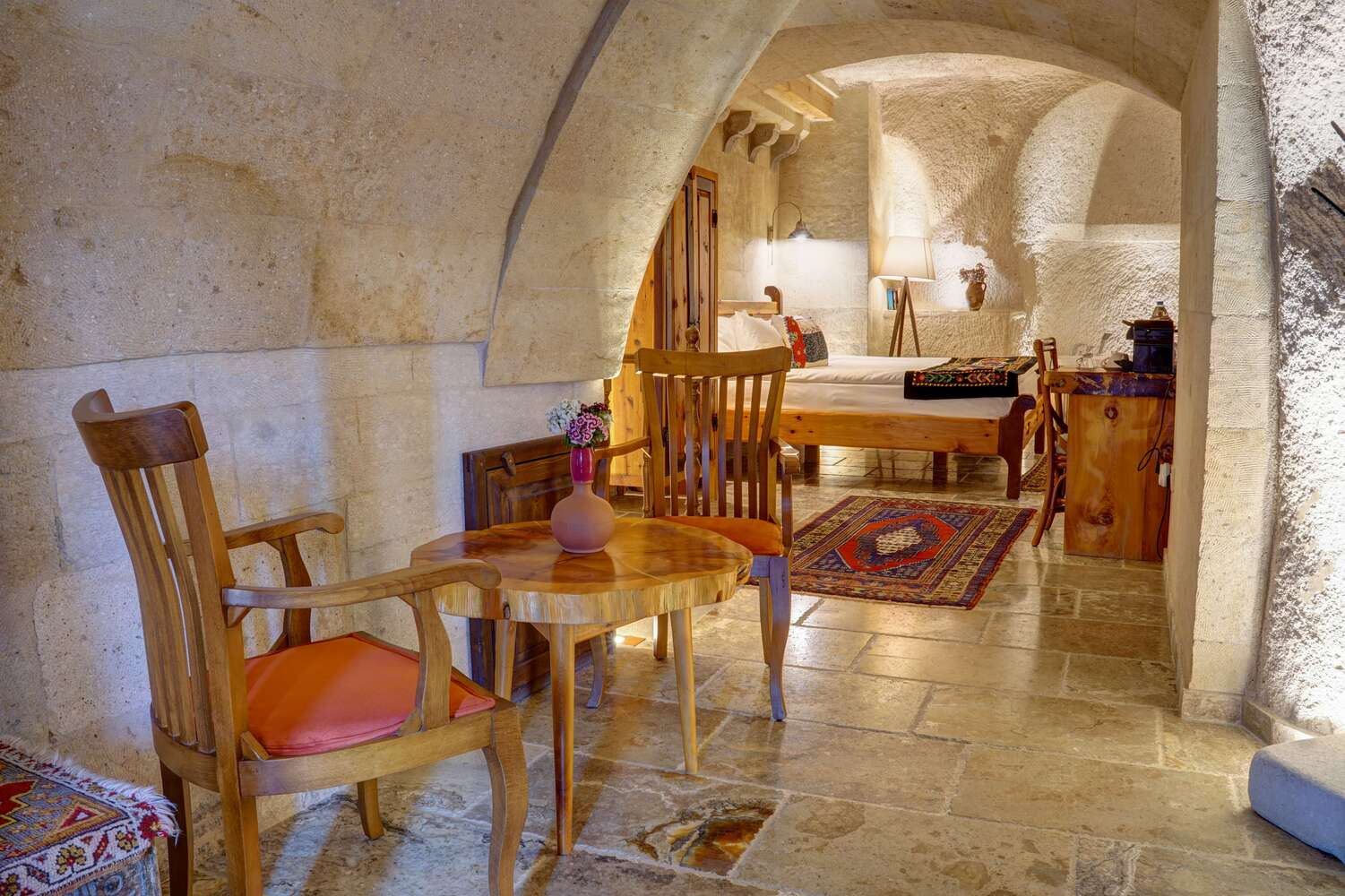 Deluxe Cave is a spacious cave-style room enriched with elements reflecting Cappadocia’s mystical charm. Enjoy the unique blend of natural ambiance and modern comfort.