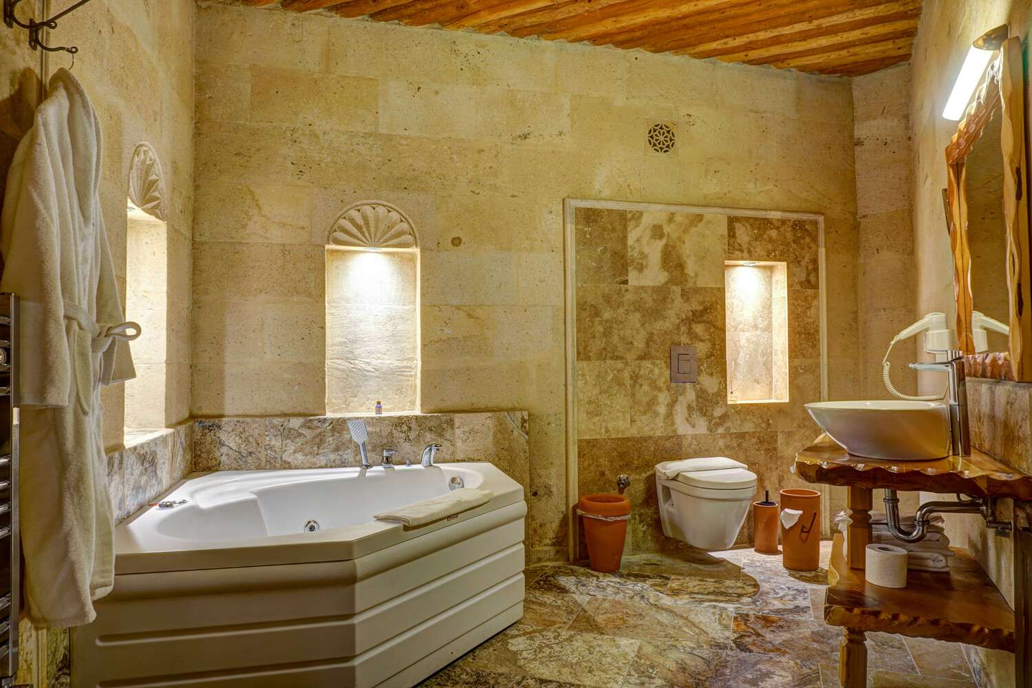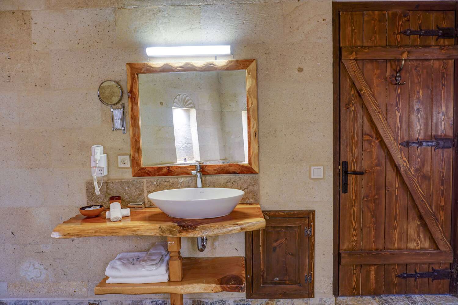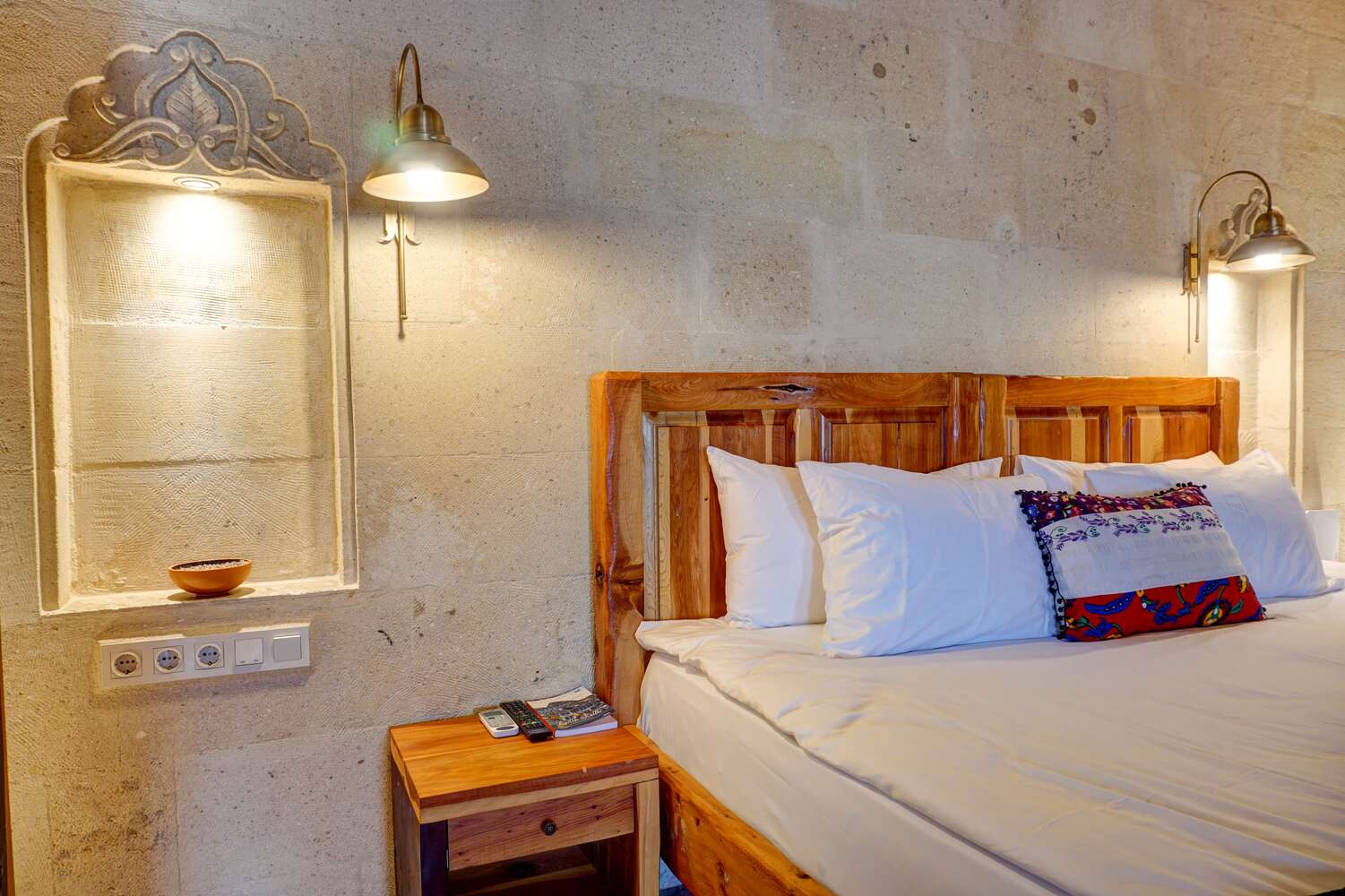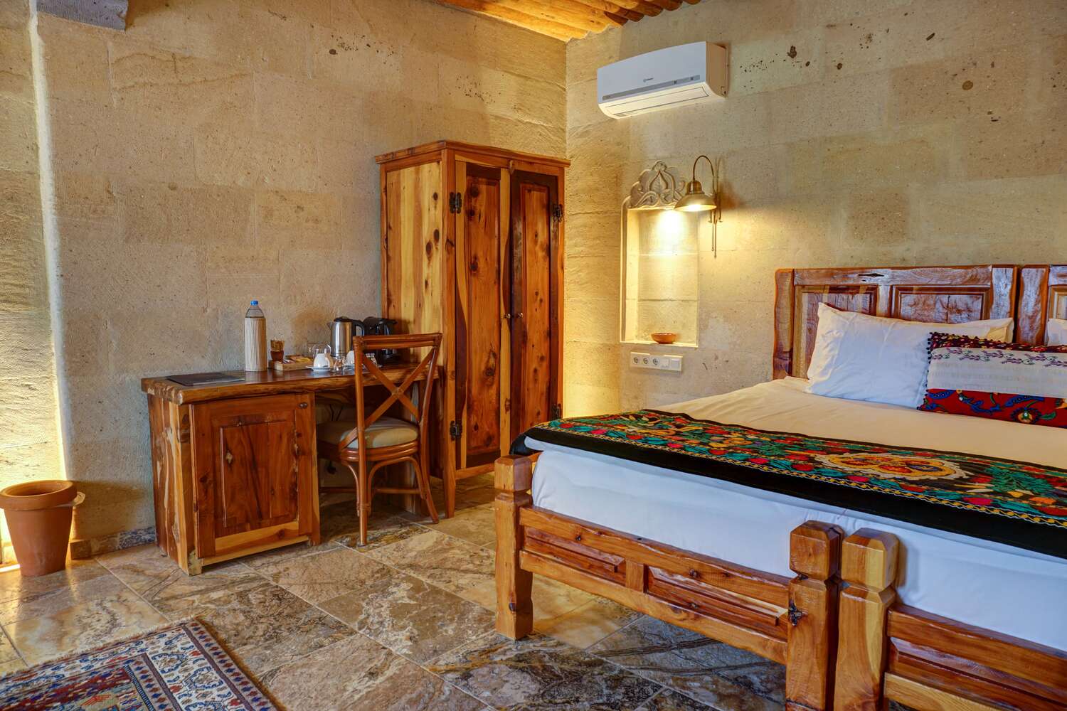 The King Suite offers an elegant and spacious setting with high ceilings, natural stone walls, and a private sitting area—bringing a royal touch to your stay.