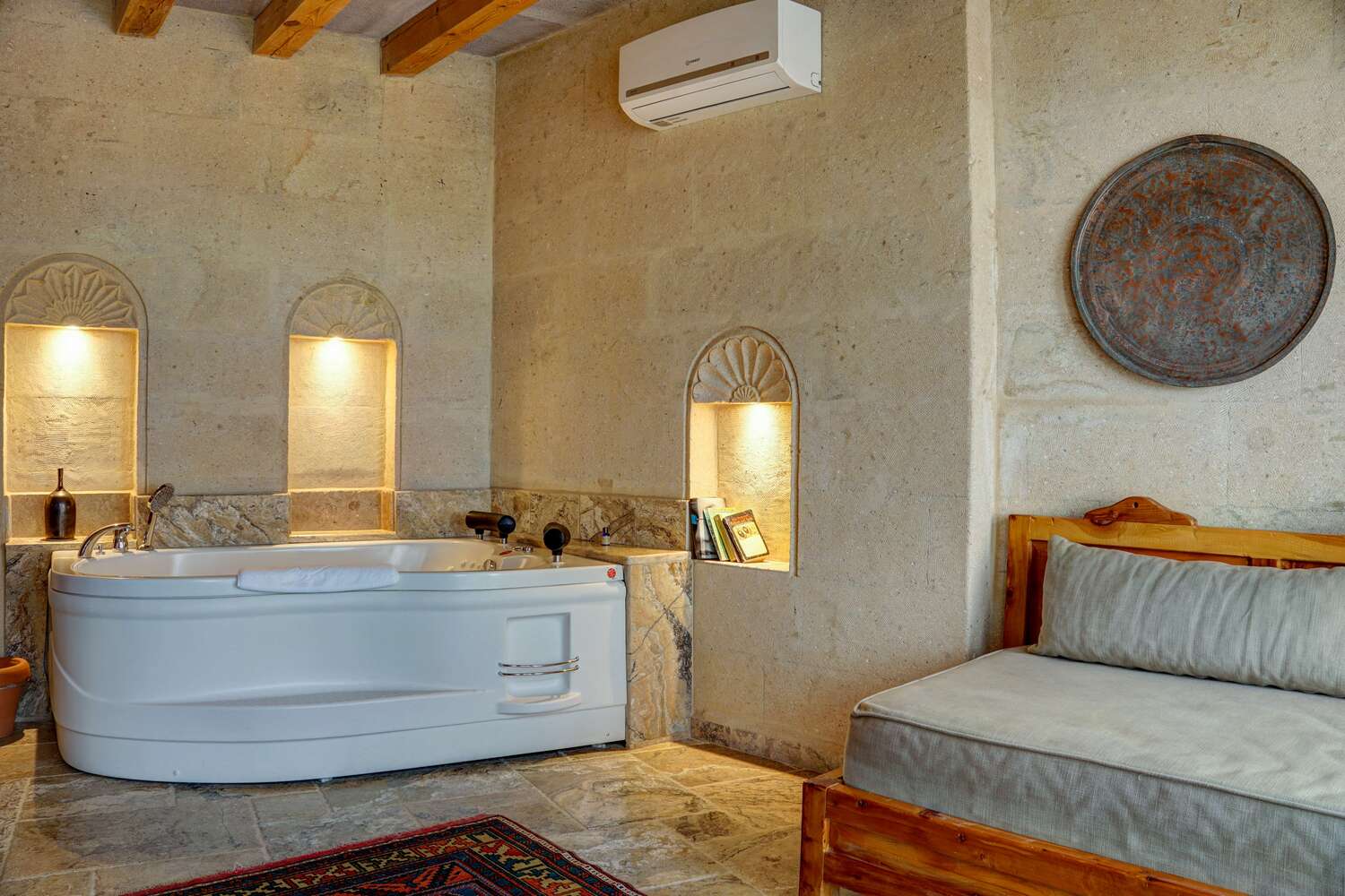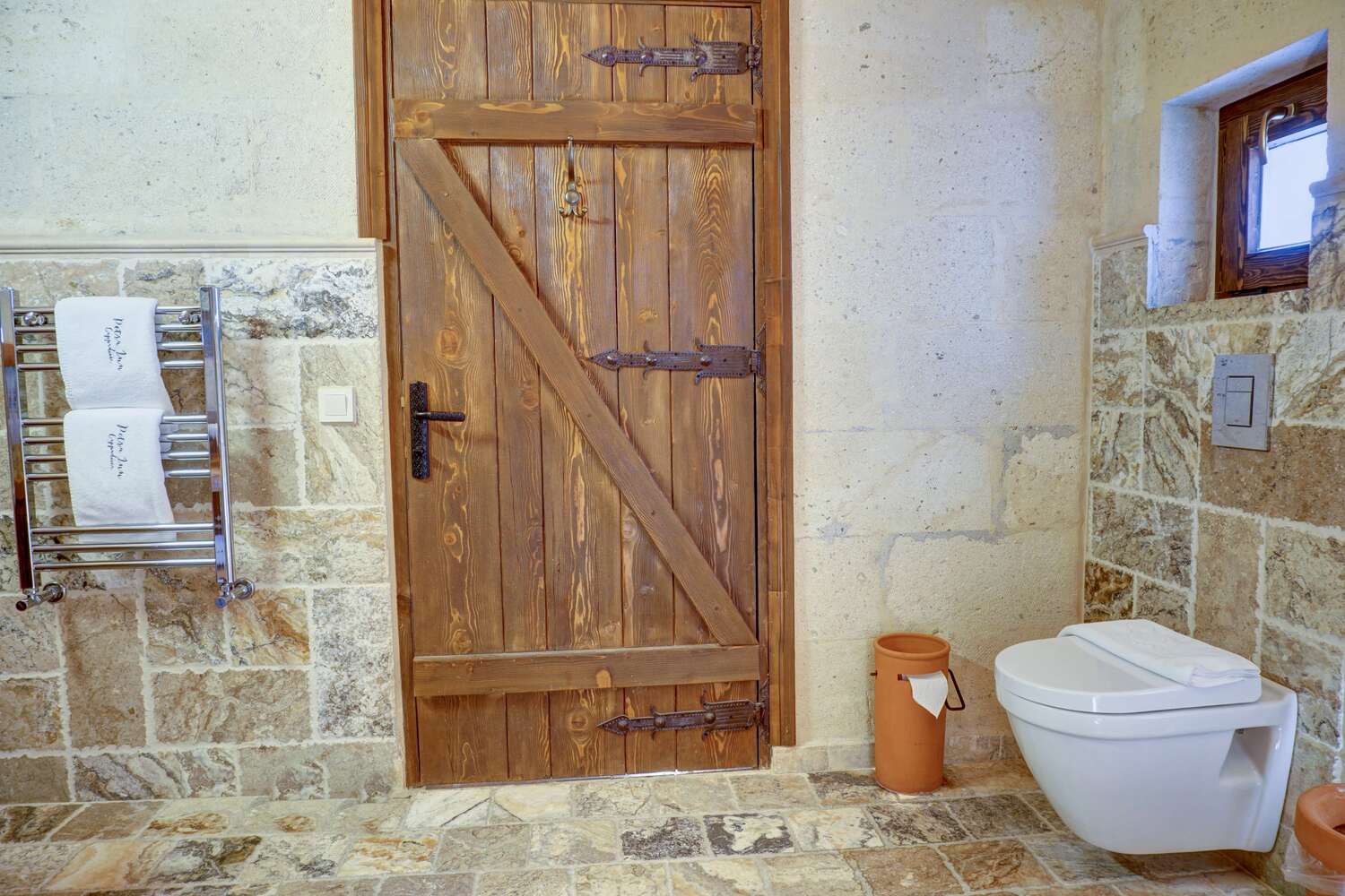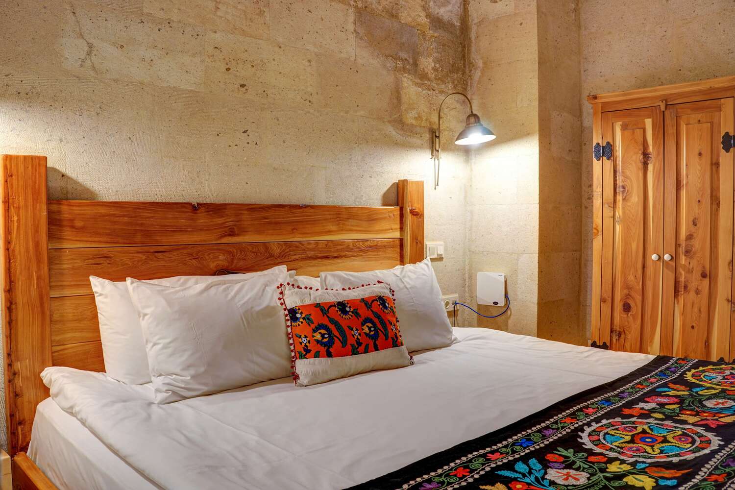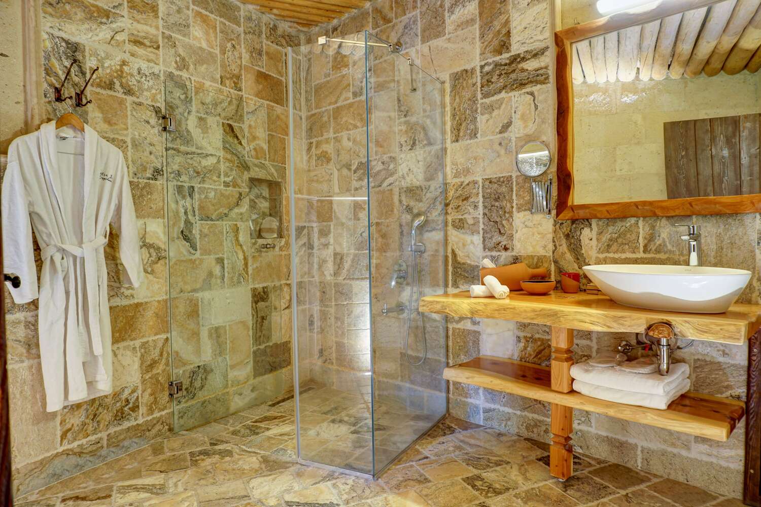 The King Suite offers an elegant and spacious setting with high ceilings, natural stone walls, and a private sitting area—bringing a royal touch to your stay